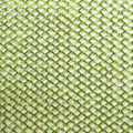 白、赤、黒などのナイロンの糸とシルバーやゴールドなどのメタリック(ラメ糸やメタリック・ヤーンなどともいいます)を撚り合わせて作った網地となります。