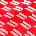 【商品名】よさこいや舞台衣装に最適な 光沢感のある素材 ラメ入りジャガード 矢絣 赤X銀