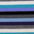 水色、紺、グリーン、黒、グレイ、白のカラフルなマルチカラーのボーダー柄です。温かみのあるうす起毛タイプのピーチスキンタッチの柔らかなニット生地です。タテとヨコの2WAYに伸び着心地もいいです。