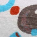 グレイベージュをベースに、ブルーとオレンジを効かせた幾何柄は、