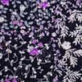 【商品名】ちりめん風ニットプリント生地 小花柄 濃紺地×紫系