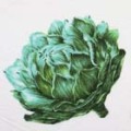 ホワイト地にグリーンの花柄を大胆に配置。