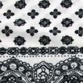【商品名】強撚スムースプリントニット生地 アラベスク柄 白地×黒