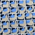 水色×ベージュに紺のラインが効いた幾何柄で、きれいめにもカジュアルにも寄せやすい印象。落ち着いた配色なので、柄物が苦手な方にも取り入れやすいタイプです。