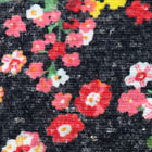 黒地に、赤・ピンク・白・イエローの花柄を散らした、 存在感のある麻混ニットプリントです。