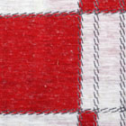 生成りベースに赤を効かせた、 大胆なブロックチェック風の幾何柄ニットプリントです。