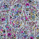 うすグレイ地に紫・ブルー系が散り、甘さを抑えた落ち着きのある印象。